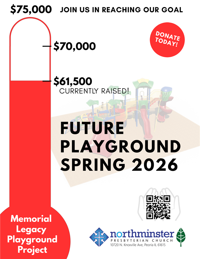 Our current playground for kids is over 25 years over. To leave a legacy for children, we plan to upgrade the playground area with a collaborative effort of support. So many families & groups currently use the playground. Poster boards will be on display in the lobby areas detailing plans to enhance and create an inviting area for kids and families. For more information, contact Jim Garner (309.439.1833).