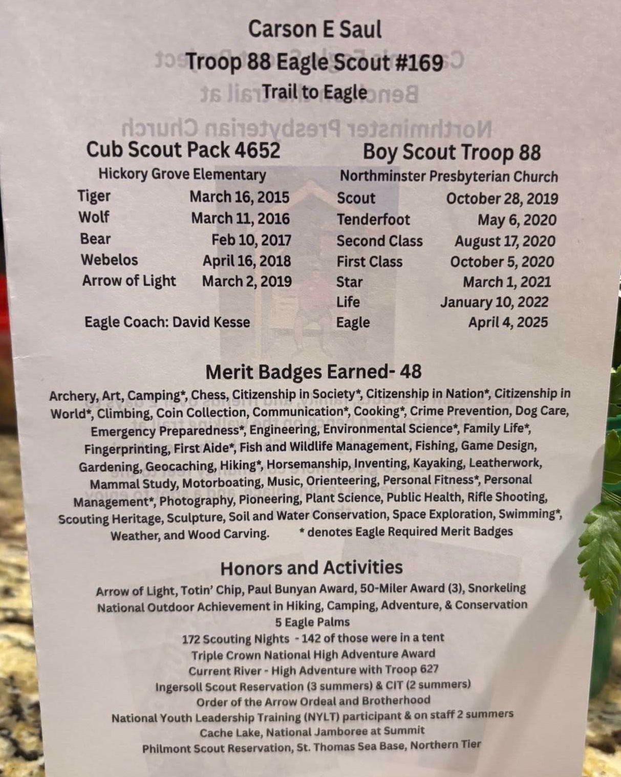 Congratulations to Carson, Eagle Scout Court of Honor! |
